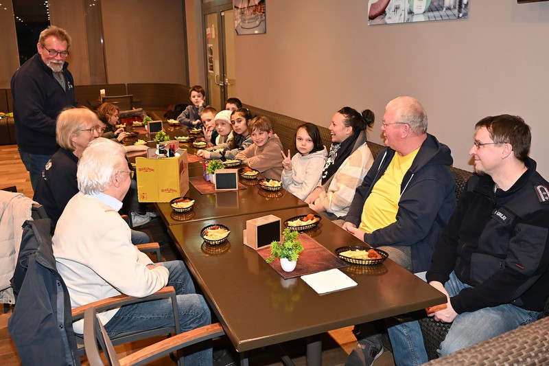 Bei einem Abschlussessen mit den Schwimmlehrern der DLRG, den EIKA- Patinnen und Paten sowie einigen Eltern