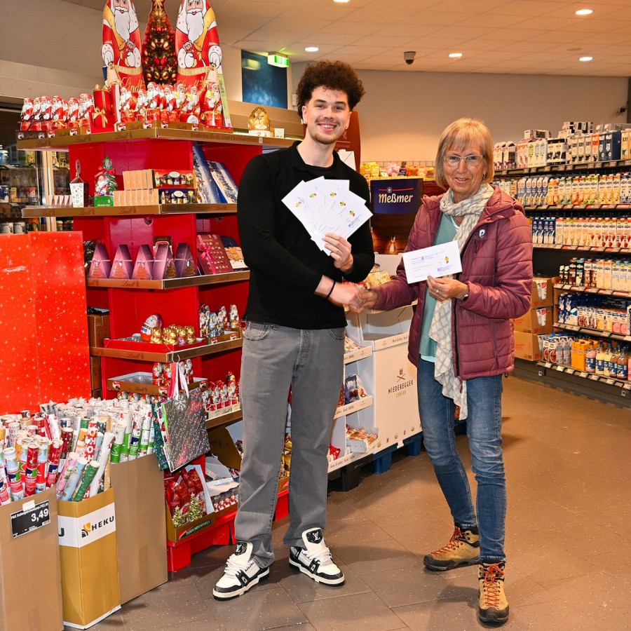 Die aus Spendengeldern für EIKA finanzierten Lebensmittelgutscheine übergab heute Florian Beyer vom